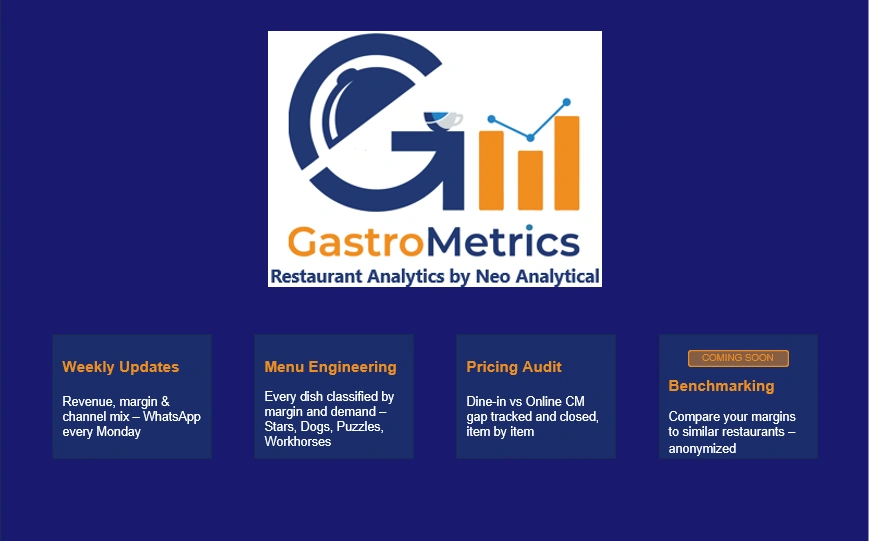 Restaurant profitability analytics powered by your own POS data. Delivered weekly, on WhatsApp, in plain language.